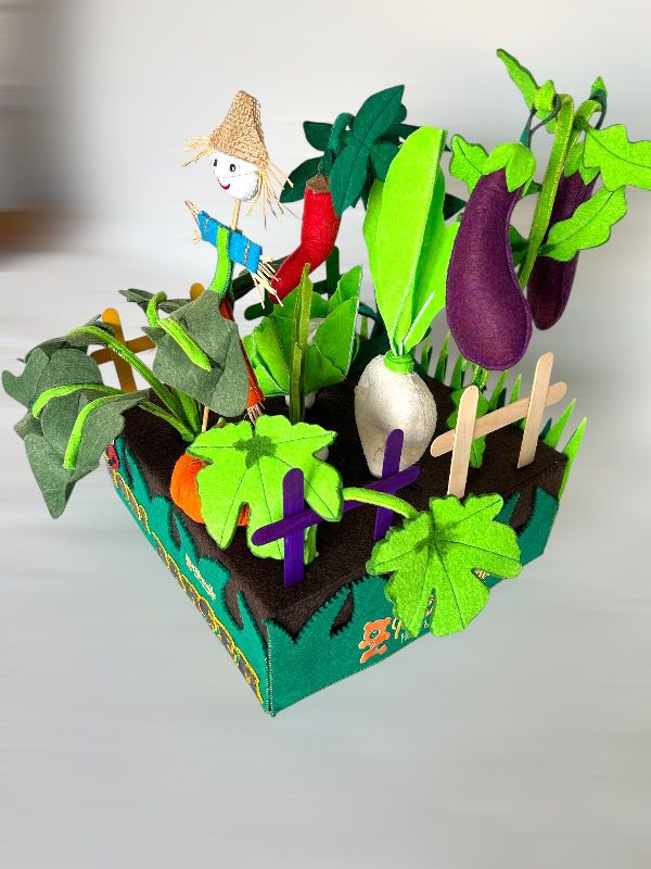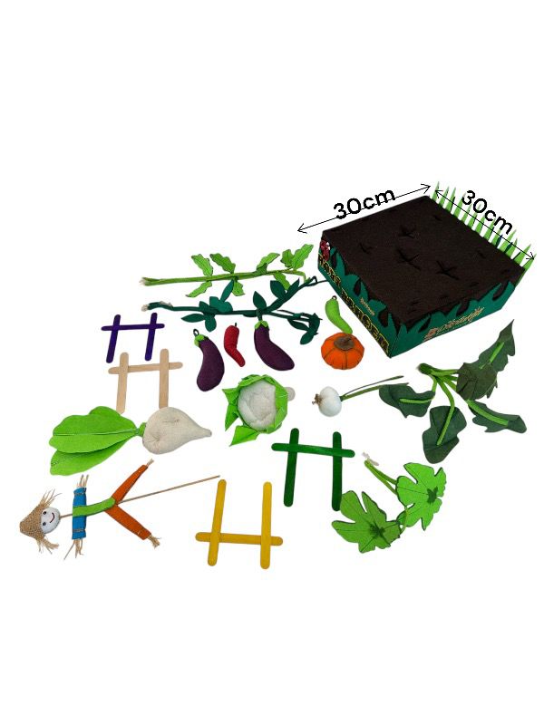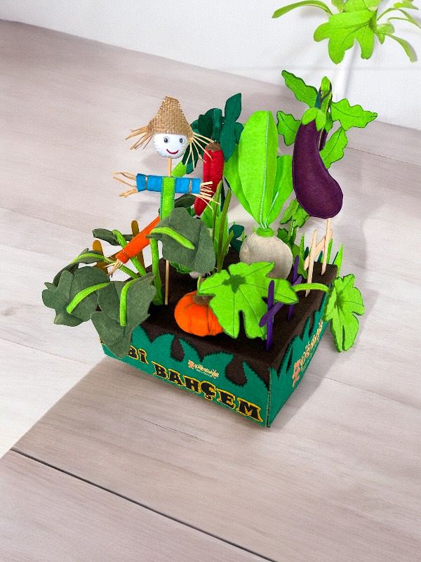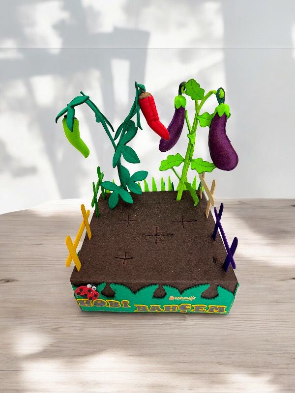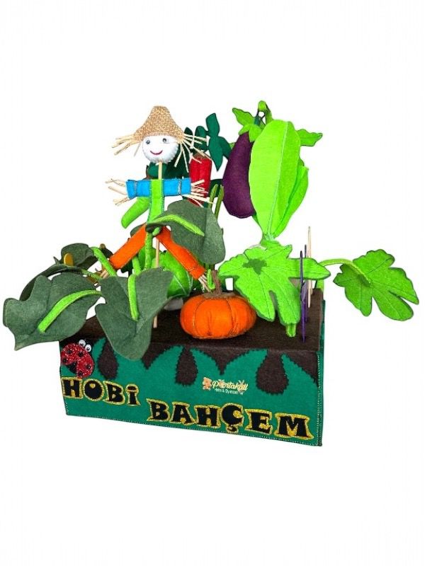 Minik ellerin sevgiyle yetiştirebileceği, doğal görünümlü, eğlenceli ve eğitici bir oyun seti. Sebzeyi çocuklara oyun yolu ile sevdirmek ve öğretmek temel amacımızdır. Çocuklara sağlıklı beslenme alışkanlığına özendirmek, sebzeleri tanıtmak ve renkleri öğrenmesine yardımcı olmak için eğlenceli bir oyuncaktır. Bu oyuncaklarla oynarken çocuklar, kendi bahçelerini yaratma ve tasarlama şansına sahip olur. Bu, onların hayal güçlerini kullanarak bitkileri ve dekorasyonları düzenlemelerine olanak tanır böylece yaratıcılıklarını arttırır. Çocuklarda doğaya karşı sevgi ve saygı geliştirir. Çocuğun motor becerilerinin, el-göz koordinasyonunun ve hayal dünyasının gelişimini destekler. Hobi bahçesi oyuncakları, arkadaşlar ve aile üyeleri ile oynandığında sosyal etkileşime teşvik eder. Bu, çocukların iş birliği yapma, paylaşma ve birlikte çalışma becerilerini geliştirmesine yardımcı olur. Hem çocuklar hem de yetişkinler için keçe hobi bahçesi oyuncakları ile uğraşmak sakinleştirici bir etkiye sahip olur. Kreşler, anaokulları, ilkokullar ve evde bireysel oyun için ideal bir eğitim materyalidir.
